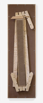 Wood, pegboard, hex nuts, washers, screws, varnish, cardboard. (L-R) 243 x 71 - 243 x 71 - 124 x 243 - 243 x 55 cm. Eugene Macki's 11-month fellowship at NXTHVN (cohort 5), U.S. resulted in the completion of this work. Photo by Chris Gardner.